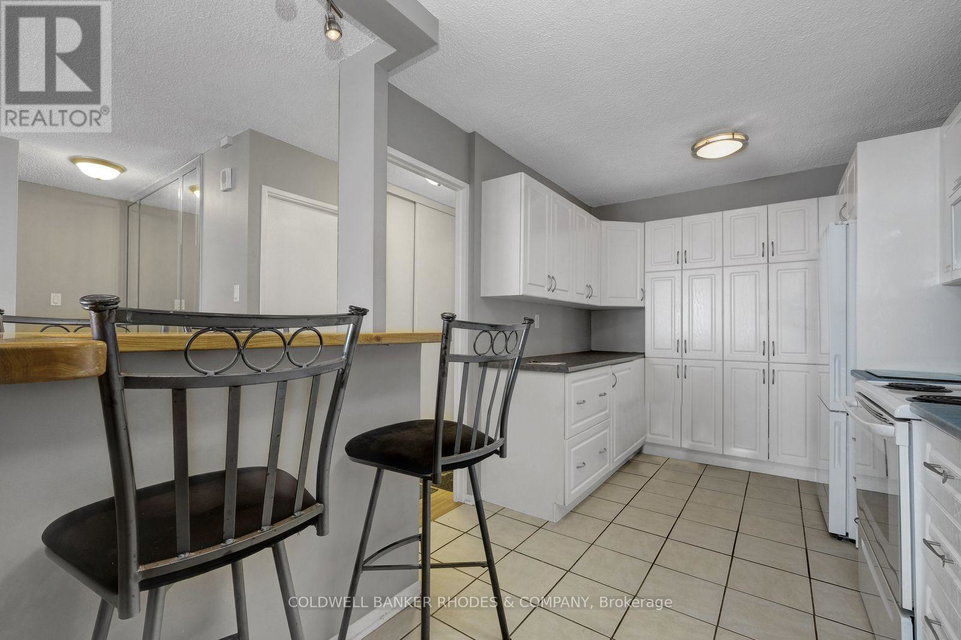 Spacious 1-Bedroom Condo with River & Downtown Views. Bright and spacious approximately 700 sq. ft. one-bedroom condo on the 16th floor of the well-managed Frobisher Place. Ideal for first-time buyers, professionals, or investors. Move-in ready. The open-concept kitchen features generous cabinetry, an eat-up breakfast bar, and a functional layout flowing into the living and dining areas. Floor-to-ceiling sliding glass doors lead to a large 17-foot private balcony, perfect for relaxing or entertaining, with views of the Rideau River and downtown skyline. This smoke-free unit includes one underground parking spot, in-unit air conditioning, and utilities are included in the condo fees. Building amenities include an indoor pool, sauna, fitness room, games room, party room, storage locker, and bike storage. A guest suite is also available. Laundry facilities are located on every floor. Located directly across from the Smyth Transit Station and stops from LRT, offering quick access to downtown. Close to hospitals, the University of Ottawa, Trainyards, Billings Bridge, shopping, and Riverside walking and biking paths. (id:17834)